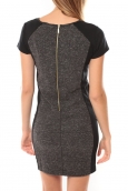 Robe manches courtes, col rond surpiqué. 2 fausses poches zip. Dos fermeture ZIP.
