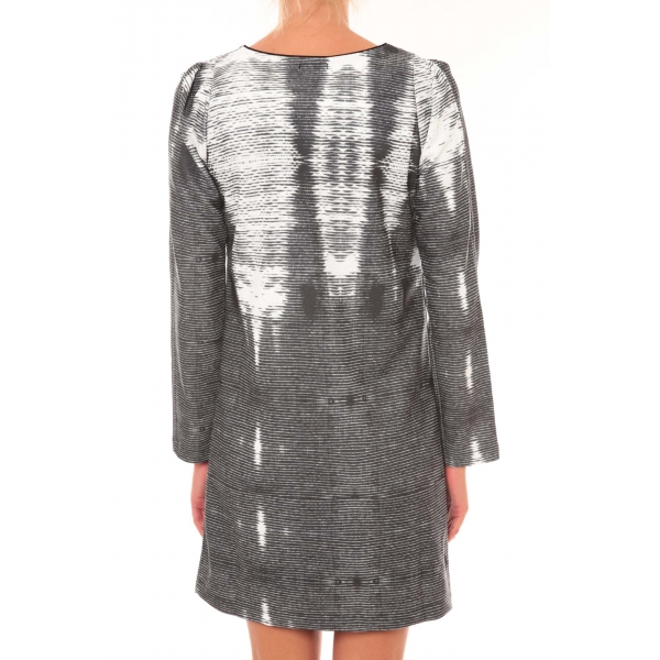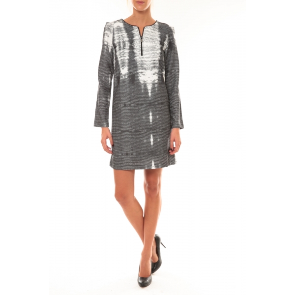 Robe droite / Manches longues / Encolure zippée / Liseré / Motifs fantaisie
